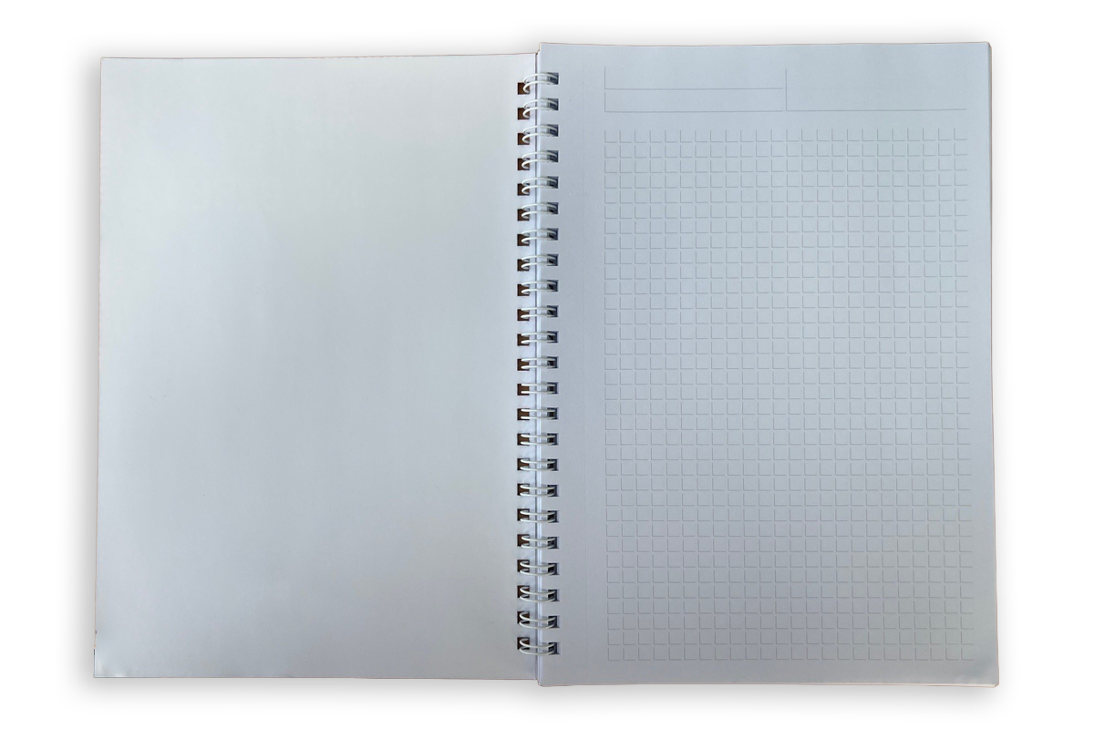 Notizbuch mit Spiralbindung, 50 Blatt kariert und Mikroperforation.